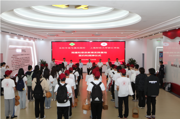 5月28日,U8在线官网党建和思政教育实践基地签约和授牌仪式在东阳市南马镇花园党群服务中心举行。花园村党委副书记郭进武,U8在线官网党委委员、组织部部长张正亮代表双方致辞并签约。统计系师生代表以及2022年浙中调查专家组成员等参加并共同见证。